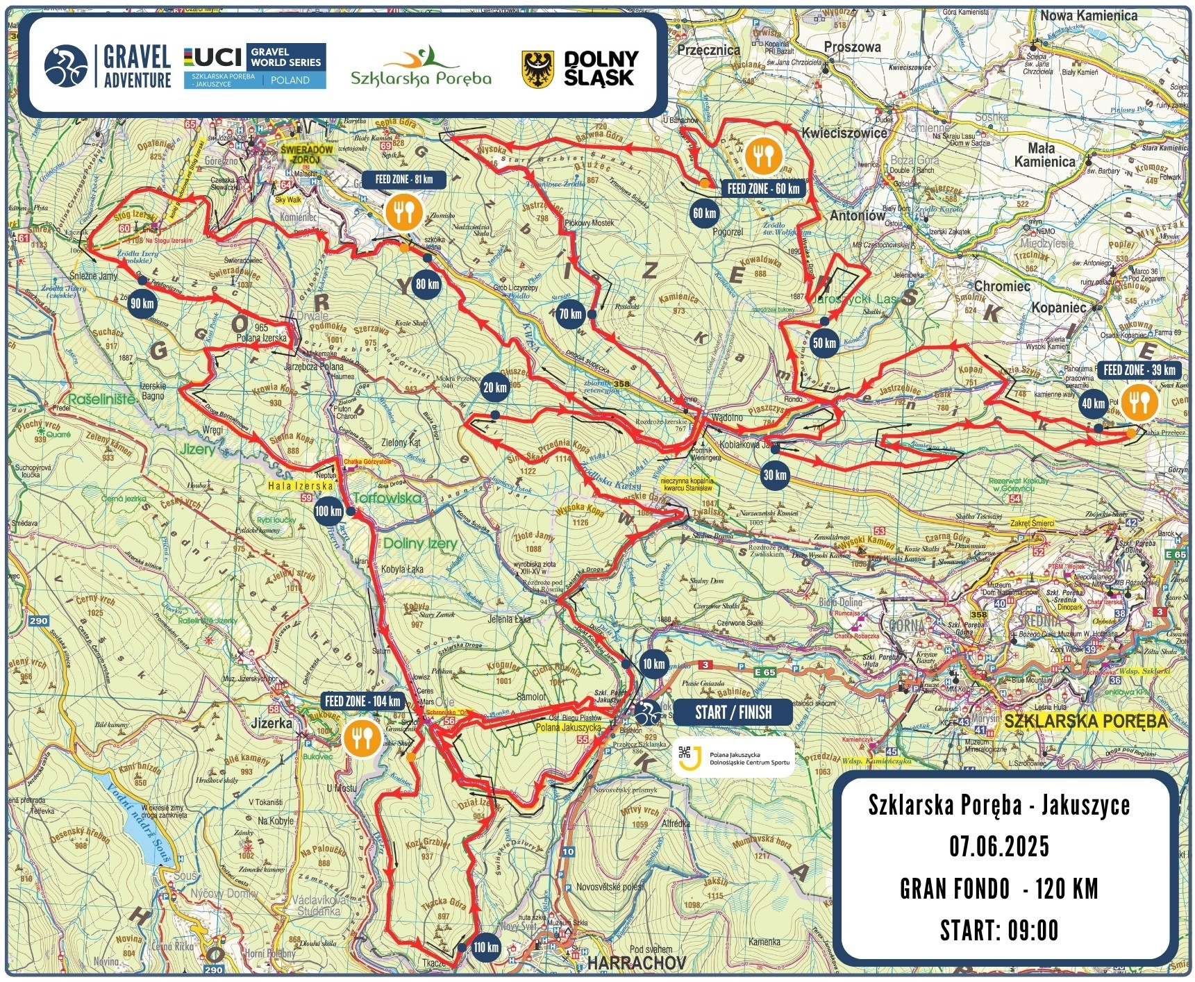 W sobotę (7 czerwca 2025r.) Szklarska Poręba, Polana Jakuszycka, Dolnośląskie Centrum Sportu oraz Góry Izerskie będą areną zmagań uczestników wyścigu gravelowego – Gravel Adventure 2025. Wyścig zaliczany jest do prestiżowej serii UCI Gravel World Series i jest zarazem kwalifikacją do Gravelowych Mistrzostw Świata.