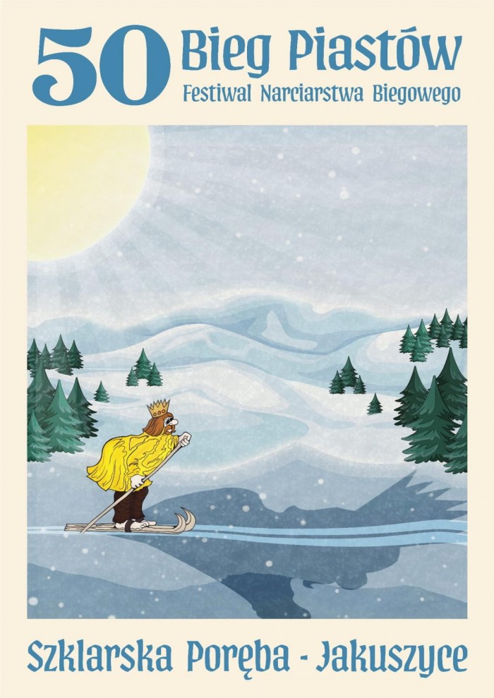 Jubileuszowy plakat Biegu Piastów z Królem Piastem! I to na nartach!